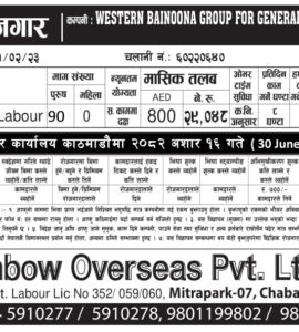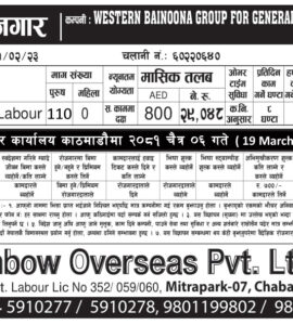 <!-- wp:paragraph --> <p><a href="https://rainbowoverseas.com.np/western-bainoona-group-for-general-contracting-l-l-c-uae-5/">Western Bainoona Group for general contracting L.L.C – UAE</a></p> <!-- /wp:paragraph -->